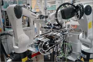 Erste Roboter werden in der Produktion eingesetzt.